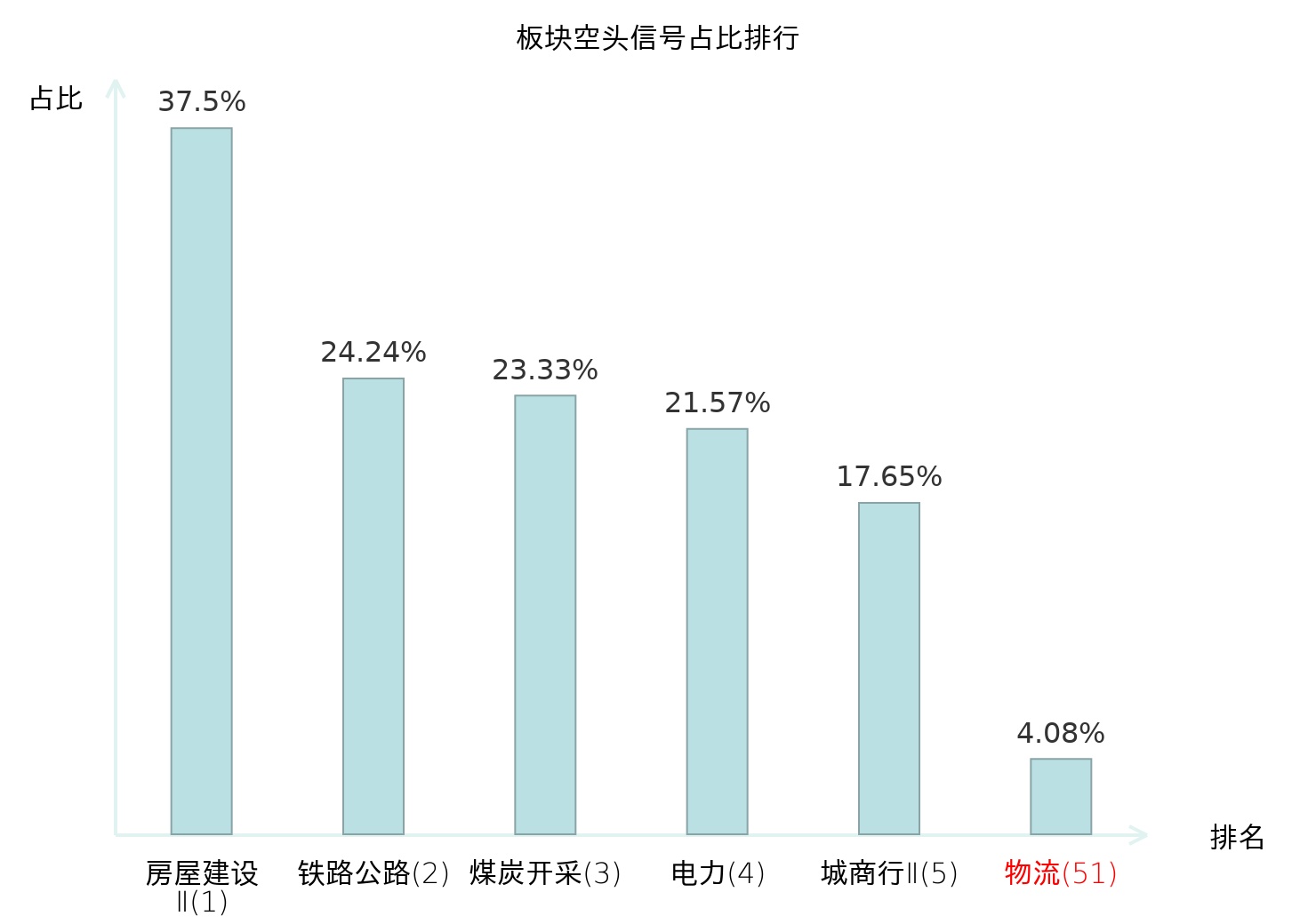 全市场所有行业板块中主力空头信号占比排名中,房屋建设Ⅱ板块位居第一。煤炭开采板块名次提升最快,较昨日上升117位。
