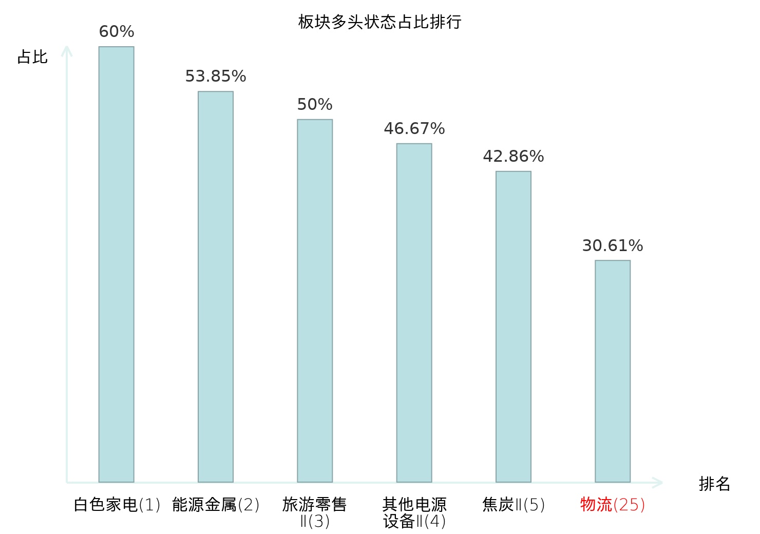 全市场所有行业板块中主力多头状态占比排名中,白色家电板块位居第一。油服工程板块名次提升最快,较昨日上升87位。