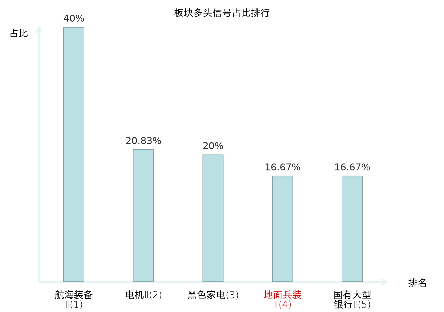 全市场所有行业板块中主力多头信号占比排名中,航海装备Ⅱ板块位居第一。国有大型银行Ⅱ板块名次提升最快,较昨日上升119位。