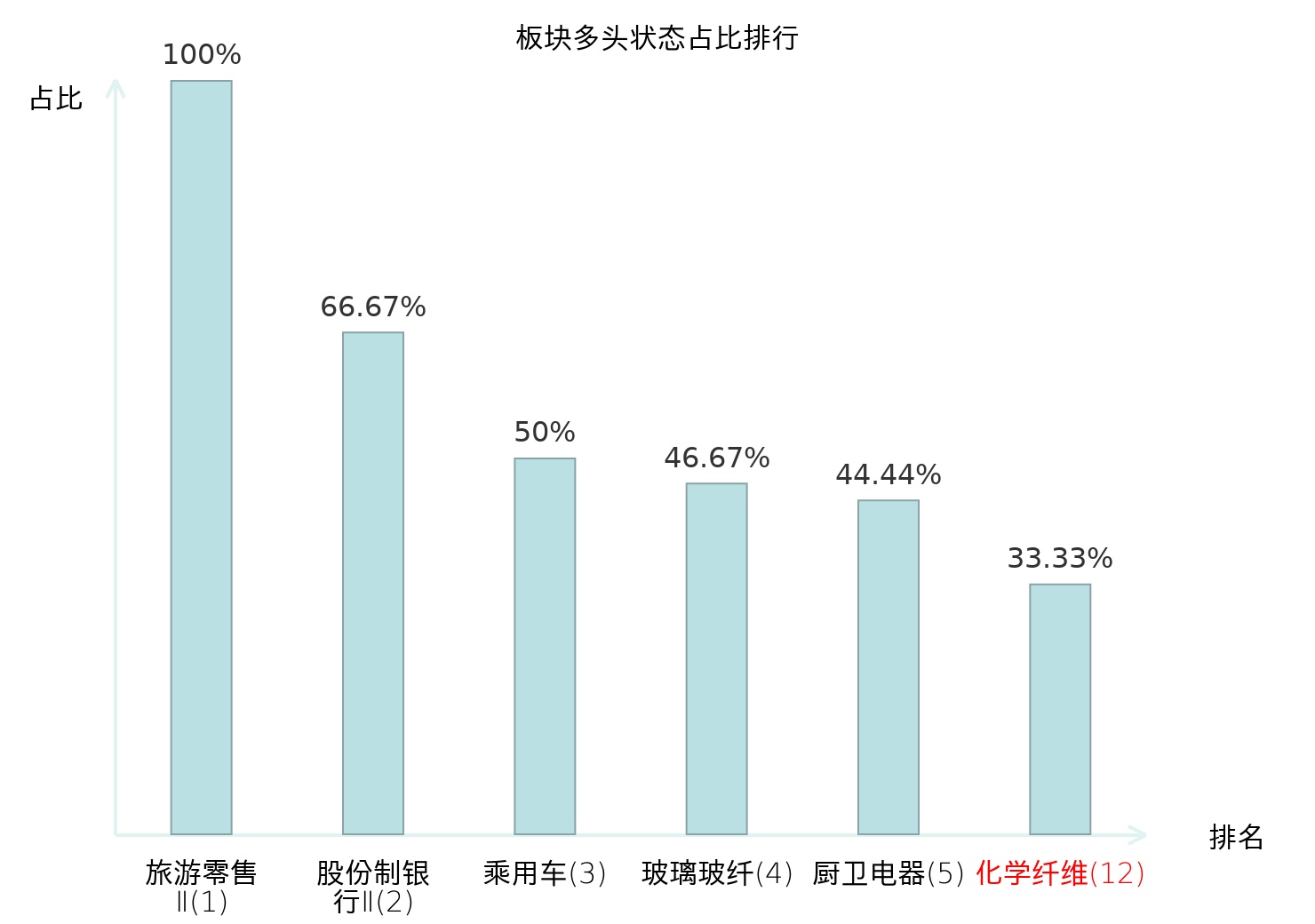 全市场所有行业板块中主力多头状态占比排名中,旅游零售Ⅱ板块位居第一。农产品加工板块名次提升最快,较昨日上升72位。