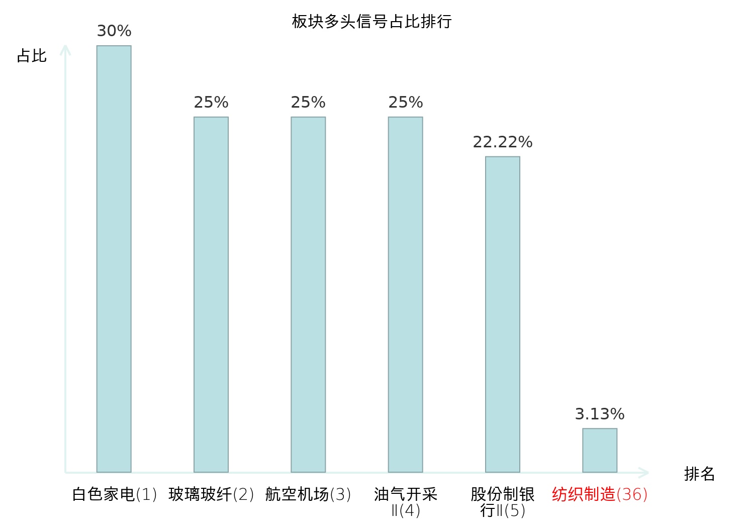全市场所有行业板块中主力多头信号占比排名中,白色家电板块位居第一。油气开采Ⅱ板块名次提升最快,较昨日上升122位。