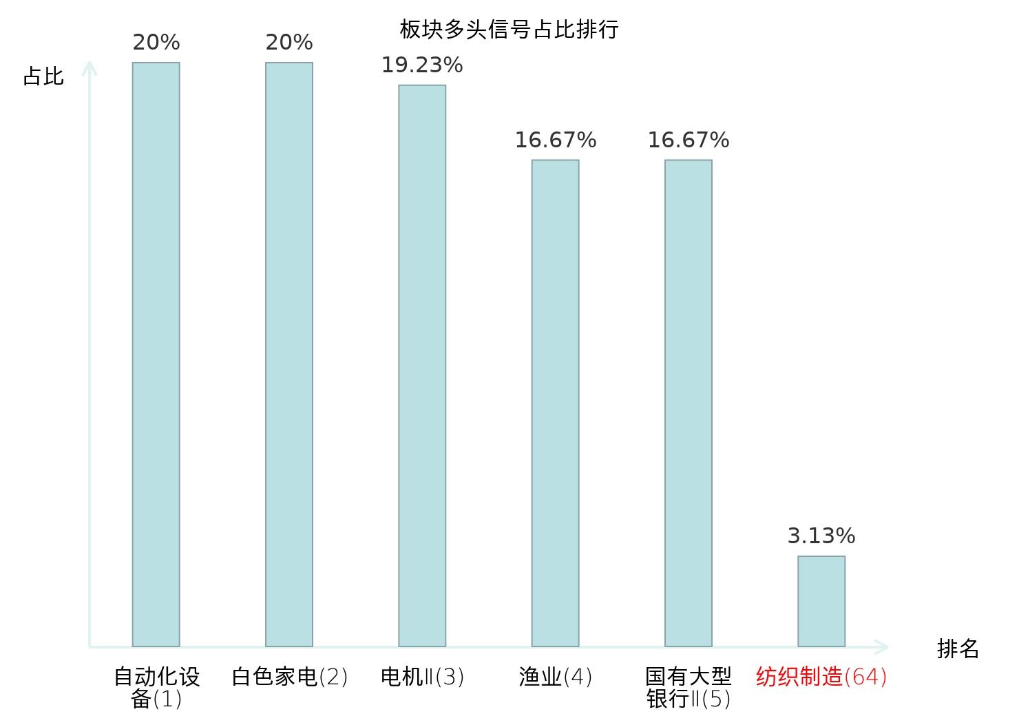 全市场所有行业板块中主力多头信号占比排名中,自动化设备板块位居第一。渔业板块名次提升最快,较昨日上升118位。