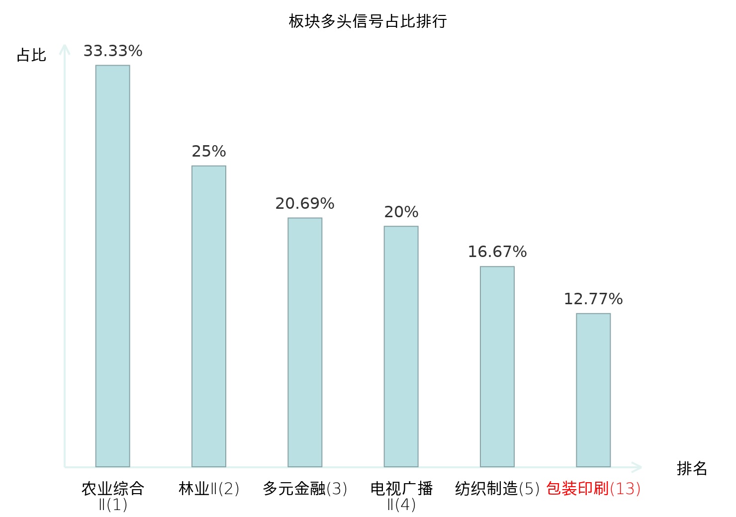 从主力宝信号数据分析,龙利得所属的包装印刷板块中共有6只股票发出主力多头信号,主力多头信号占比在全行业中排名第13位,较昨日上升44位。排名提升表明主力对该板块的买入意愿增强,为主力资金流入提供了积极信号。全市场所有行业板块中,农业综合Ⅱ板块的主力多头信号占比最高,位居第一。农业综合Ⅱ板块名次提升最快,较昨日上升127位。这些变动揭示了不同行业间主力资金动向的趋势,对投资者了解市场情绪和潜在投资机会具有重要参考价值。