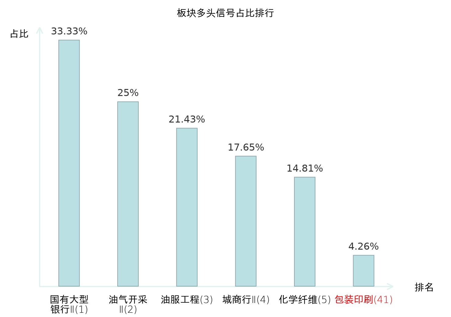 全市场所有行业板块中主力多头信号占比排名中,国有大型银行Ⅱ板块位居第一。国有大型银行Ⅱ板块名次提升最快,较昨日上升124位。