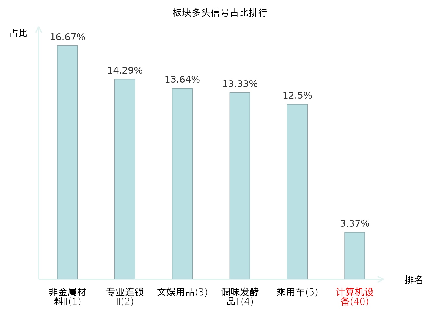 从主力宝信号数据分析,狄耐克所属的计算机设备板块中共3只股票发出主力多头信号,主力多头信号占比在全行业中排名第40位,较昨日上升13位。排名的上升表明主力对于该板块的买入意愿有所增强,这对投资者来说是关注该板块动态的一个重要参考。全市场所有行业板块中主力多头信号占比排名中,非金属材料Ⅱ板块位居第一;乘用车板块名次提升最快,较昨日上升115位。这些变化揭示了不同行业间主力资金的动向,有助于投资者及时了解市场情绪和潜在的投资机会。