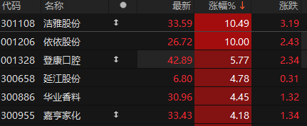 上证报中国证券网讯 9月4日午后,美容护理板块快速拉升。截至13时16分,依依股份涨停。洁雅股份涨超10%,登康口腔涨逾5%,华业香料、嘉亨家化等跟涨。