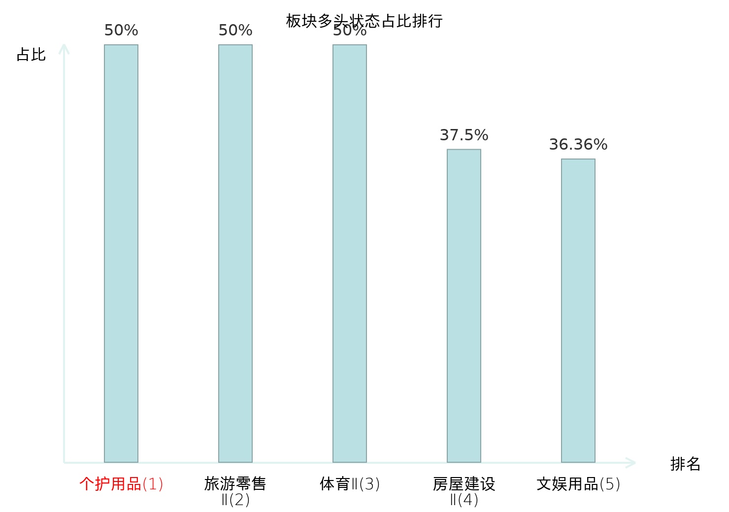 全市场所有行业板块中主力多头状态占比排名中,个护用品板块位居第一。焦炭Ⅱ板块名次提升最快,较昨日上升68位。