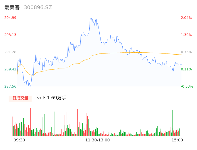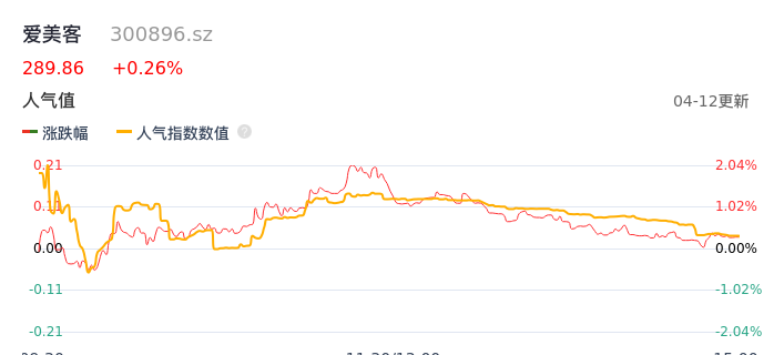 04月12日,爱美客收报289.86,股价涨幅0.26%,成交金额4.93亿元,换手率1.13%。