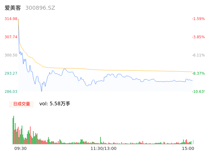 04月08日,爱美客收报290.47,股价涨幅-9.25%,成交金额16.40亿元,换手率3.74%。