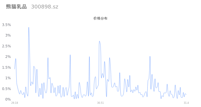 然后我们来看下当日成交的价格分布。将今天股票的最低价与最高价之差形成的价格区间进行切片,并画直方图进行分析,观察成交量在价格区间的分布情况。可以发现,当日的成交分布呈现左偏峰分布,这说明,该股票大部分成交集中在中位数以下,说明交易重心下降,近期可能会存在短线下跌风险。