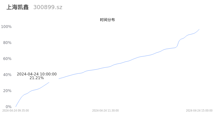 300899上海凯鑫2024年04月24日成交3.26万手,成交金额6745.90万元,相较昨日放量44手,换手率7.96%,成交清淡。