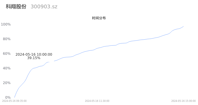 根据成交分布分析,该股票当天放量成交,成交清淡。时间上看,早盘前半小时成交量占据当天总成交量的39.15%;价格上看,成交呈现右偏峰。成交分布分析主要研究股票成交的分布特性,不具有预测功能,请知悉。