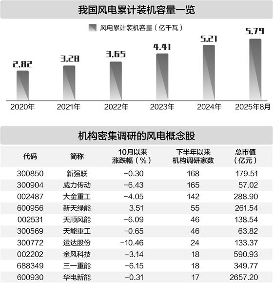 风电行业获机构高度关注,下半年以来,共有13只风电概念股获得10家及以上机构调研,占比超过总数的三成,其中新强联、威力传动、大金重工的机构调研家数在100家及以上。