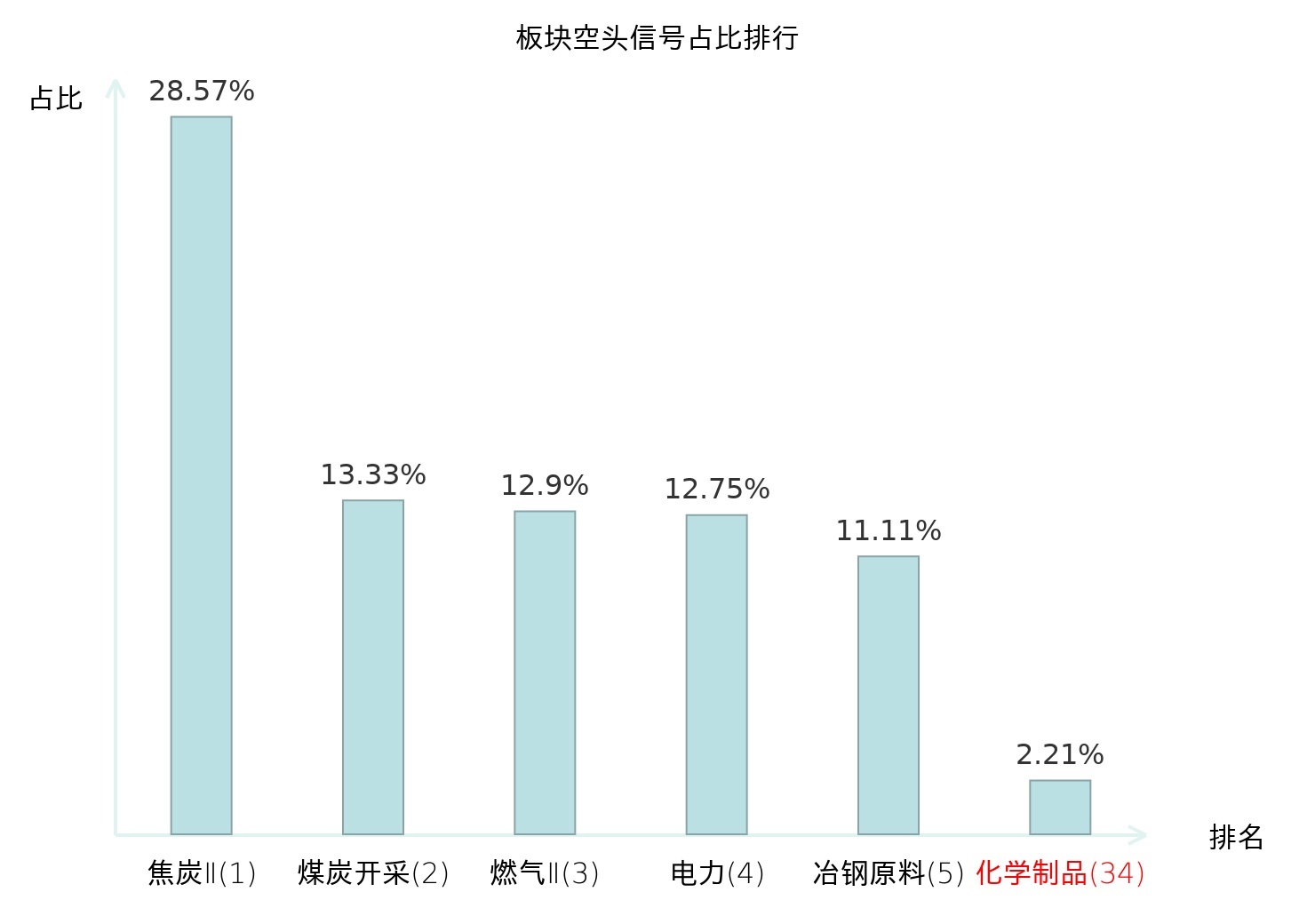 全市场所有行业板块中主力空头信号占比排名中,焦炭Ⅱ板块位居第一。通信服务板块名次提升最快,较昨日上升114位。