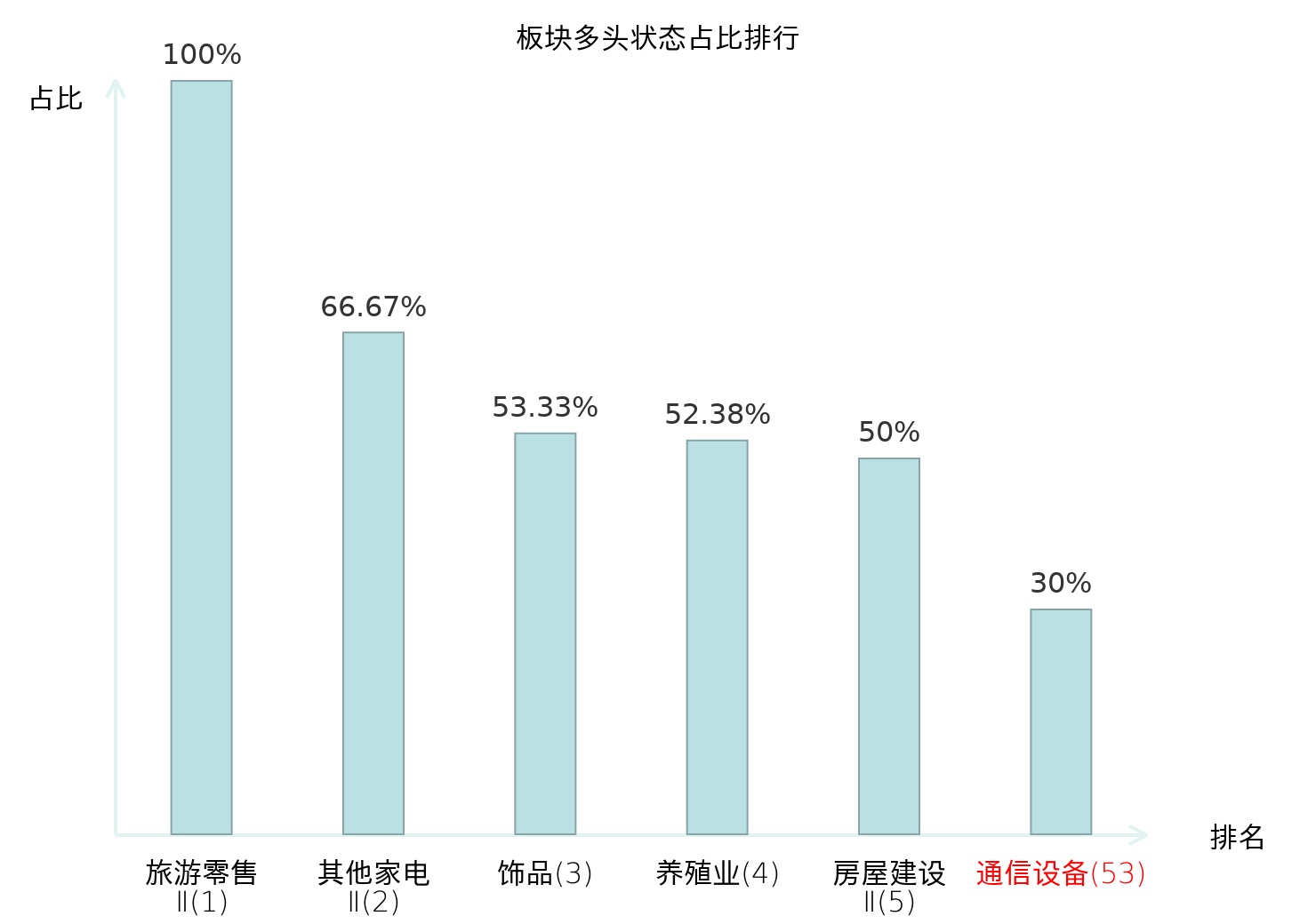全市场所有行业板块中主力多头状态占比排名中,旅游零售Ⅱ板块位居第一。体育Ⅱ板块名次提升最快,较昨日上升93位。