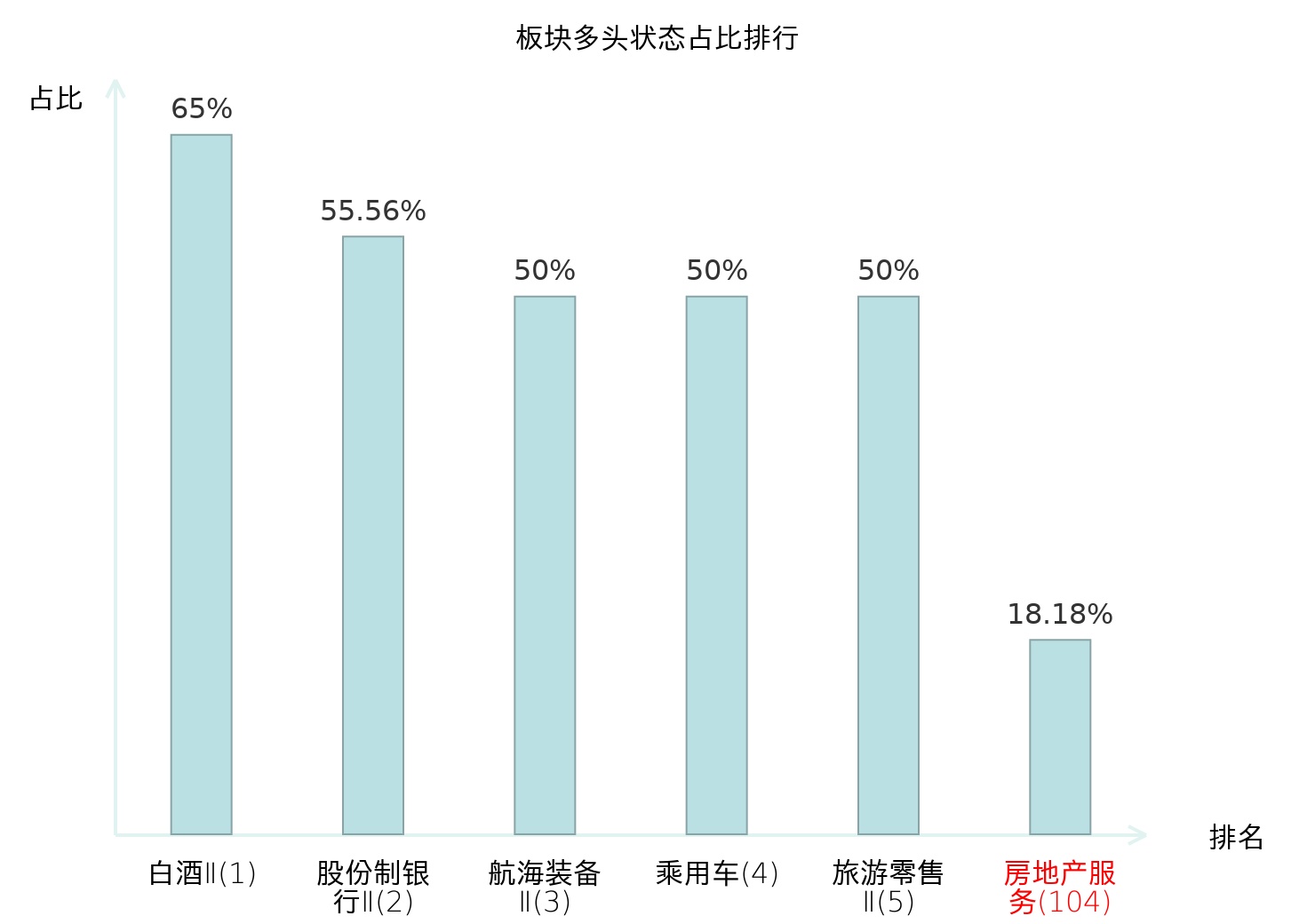 全市场所有行业板块中主力多头状态占比排名中,白酒Ⅱ板块位居第一。其他家电Ⅱ板块名次提升最快,较昨日上升93位。