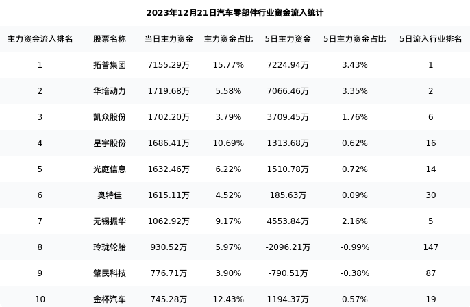 从主力资金流向来看,汽车零部件行业今日主力资金流入39.85亿元,在所有申万二级行业中排名:110/131。