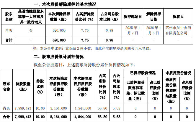 上证报中国证券网讯 华安鑫创日前发布公告称,公司持股5%以上股东肖炎,其所持有的62万股公司股份办理了解除质押业务。具体情况公告如下: