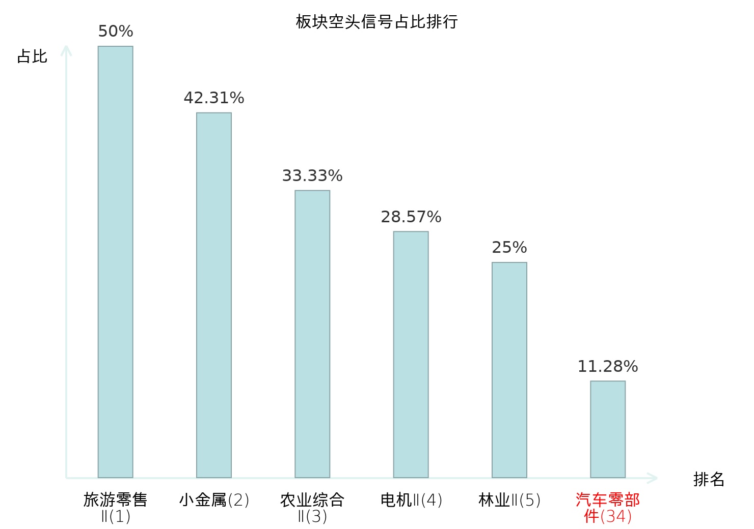 全市场所有行业板块中主力空头信号占比排名中,旅游零售Ⅱ板块位居第一。元件板块名次提升最快,较昨日上升119位。