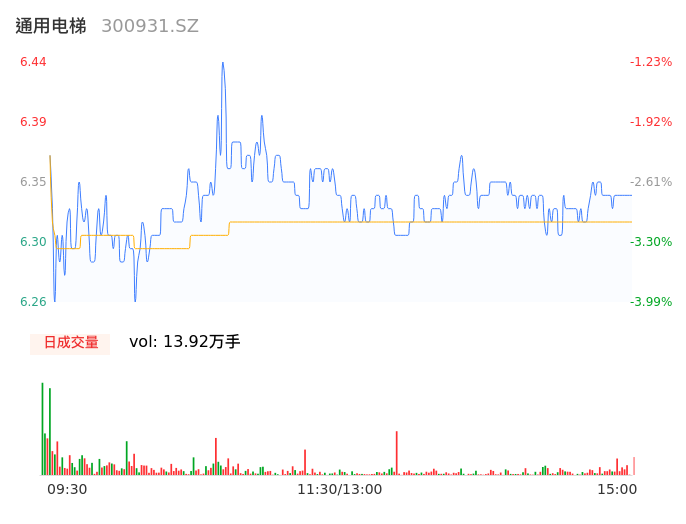 05月07日,通用电梯收报6.35,股价涨幅-2.61%,成交金额8799.97万元,换手率6.94%。