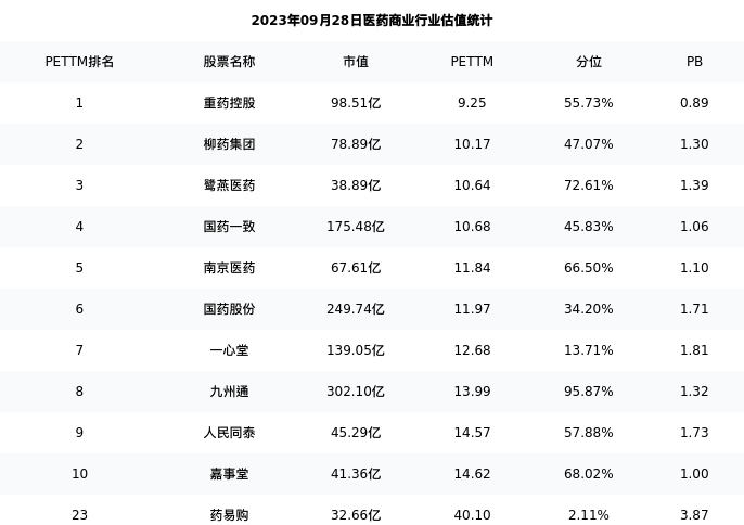 从估值角度看:药易购最新市盈率PETTM为40.10,在行业内排名23/32,处于2.11分位。