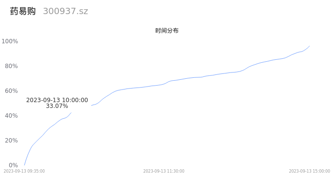300937药易购2023年09月13日成交2.20万手,成交金额7551.24万元,相较昨日缩量8417手,换手率5.34%,成交清淡。