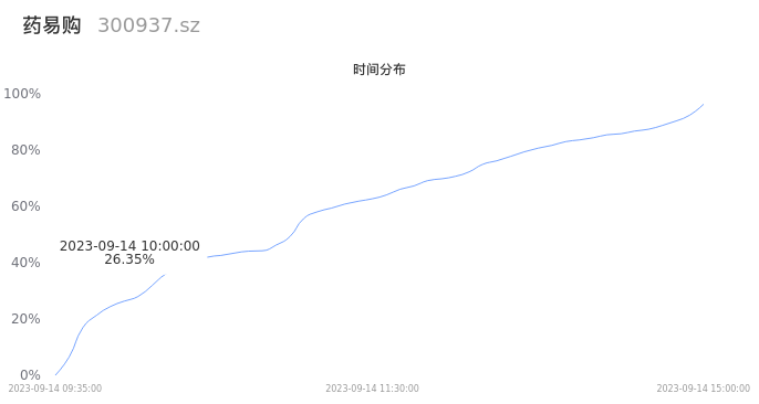 300937药易购2023年09月14日成交2.41万手,成交金额8313.45万元,相较昨日放量2121手,换手率5.86%,成交清淡。
