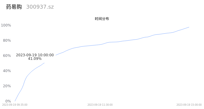 300937药易购2023年09月19日成交2.79万手,成交金额9756.46万元,相较昨日缩量7595手,换手率6.78%,成交清淡。
