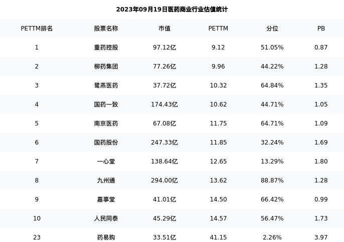从估值角度看:药易购最新市盈率PETTM为41.15,在行业内排名23/32,处于2.26分位。