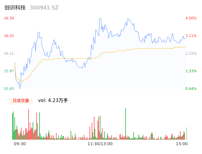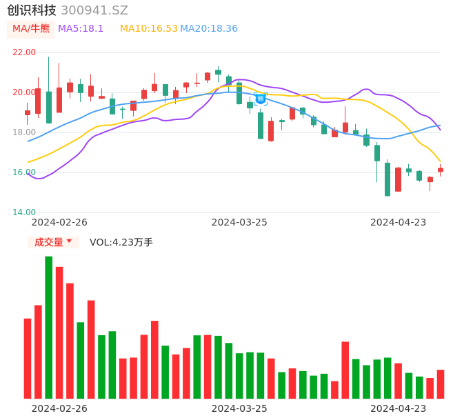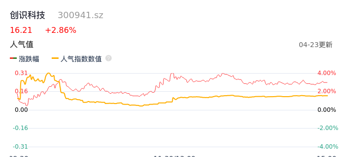 04月23日,创识科技收报16.21,股价涨幅2.86%,成交金额6833.01万元,换手率3.48%。