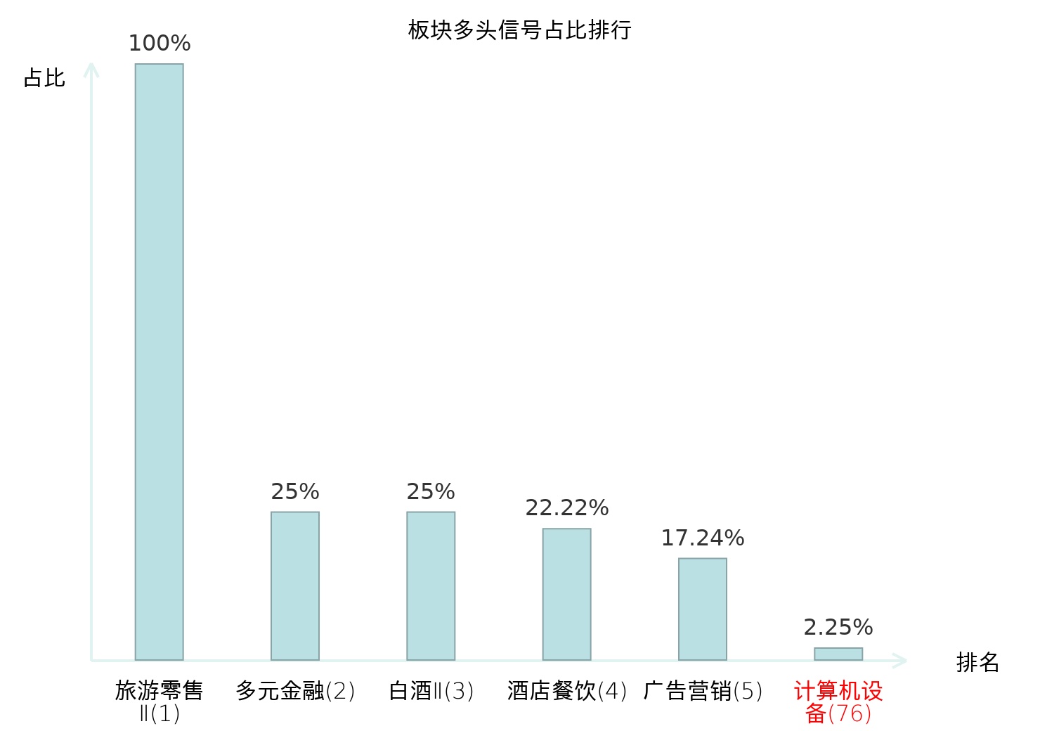 从主力宝信号数据分析,创识科技所属的计算机设备板块中共2只股票发出主力多头信号,主力多头信号占比在全行业中排名第76位,较昨日下降23位。排名较高表明主力当日买入意愿较强,此次排名下降可能反映了主力对该板块态度的微调。全市场所有行业板块中主力多头信号占比排名中,旅游零售Ⅱ板块位居第一;旅游零售Ⅱ板块名次提升最快,较昨日上升130位。这些变动揭示了不同行业间主力资金偏好的变化,为投资者提供了观察市场趋势的重要参考。