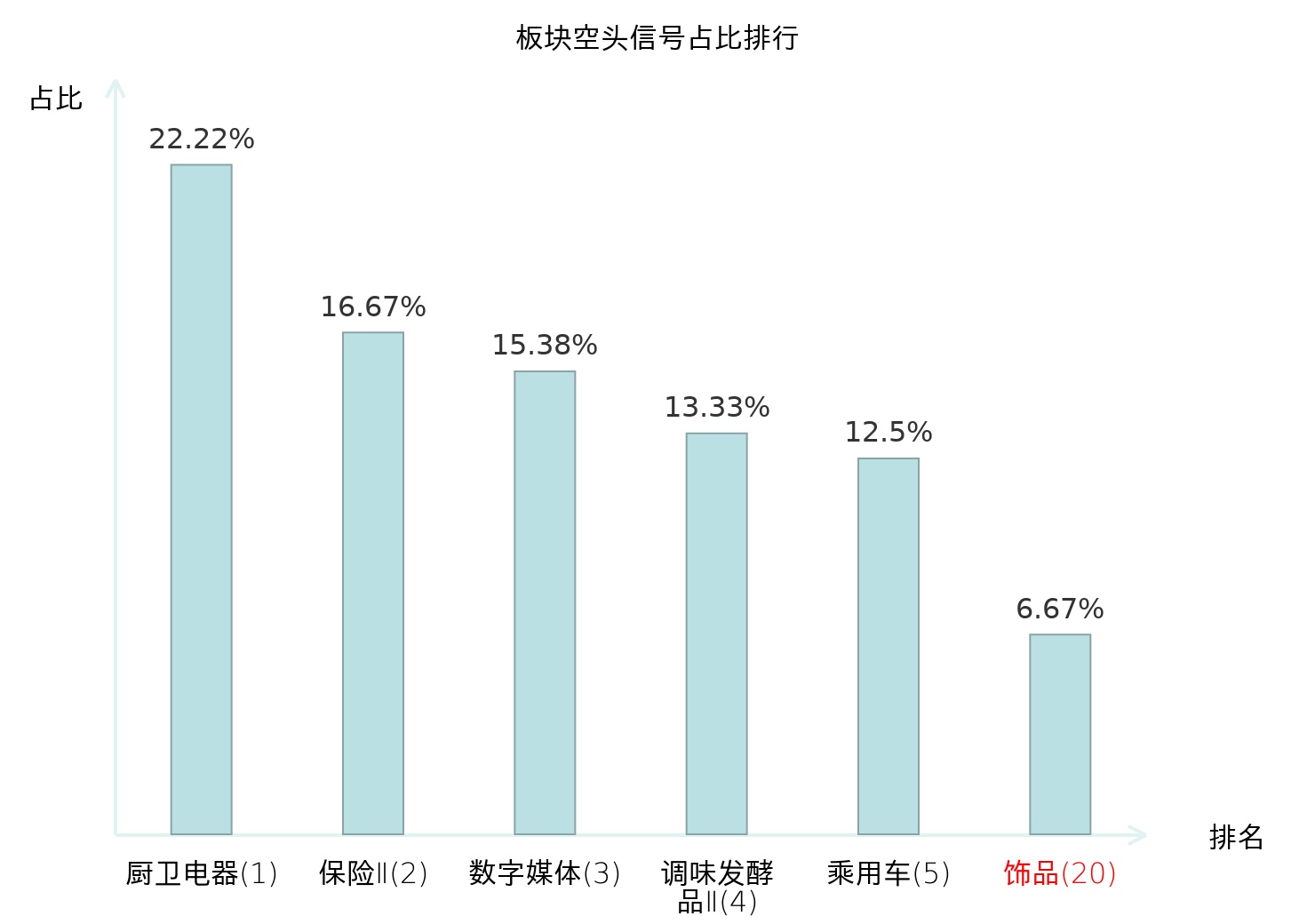 全市场所有行业板块中主力空头信号占比排名中,厨卫电器板块位居第一。教育板块名次提升最快,较昨日上升105位。