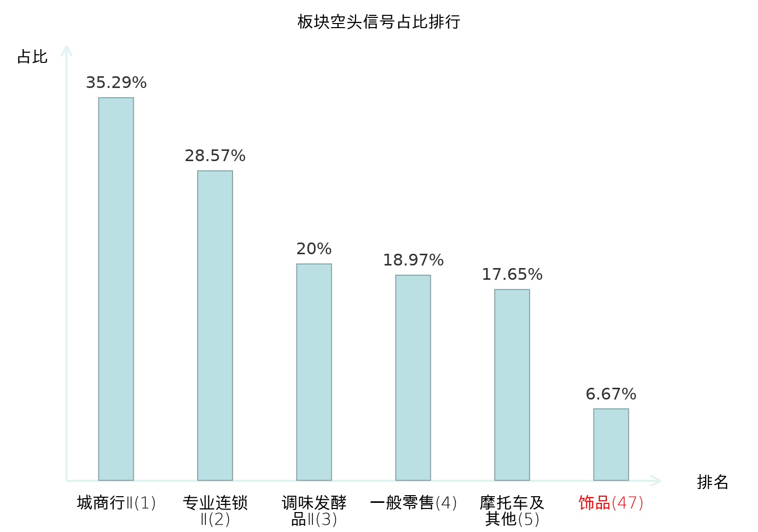 从主力宝信号数据分析,曼卡龙所属的饰品板块中共有1只股票发出主力空头信号,主力空头信号占比在全行业中排名第47位,较昨日上升32位。排名的上升表明主力对于该板块的卖出意愿增强,这可能反映了主力态度的调整。全市场所有行业板块中主力空头信号占比排名中,城商行Ⅱ板块位居第一;炼化及贸易板块名次提升最快,较昨日上升96位。这些变动揭示了不同行业间主力资金动向的趋势,为投资者提供了市场情绪和潜在投资机会的重要参考。