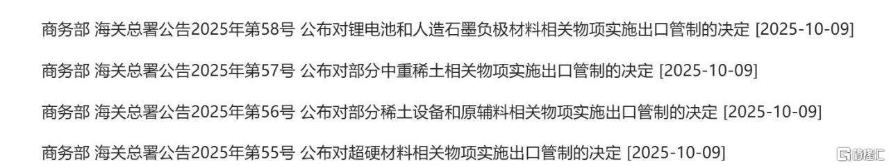 早前,商务部、海关总署联合发布重磅公告,超硬材料、稀土、锂电池等暂停出口管制一年。