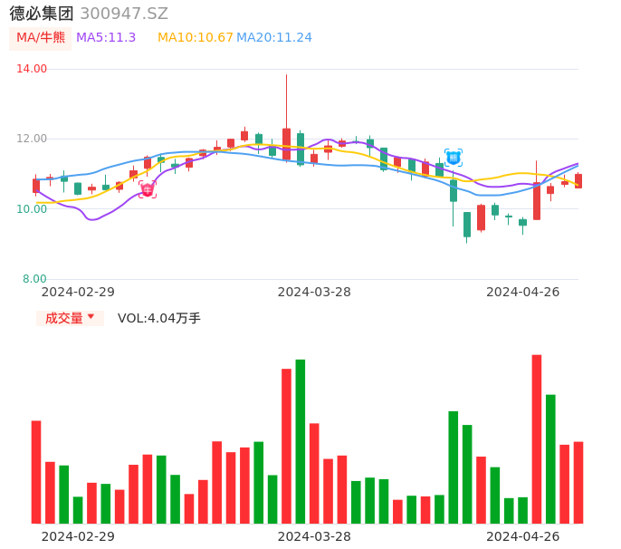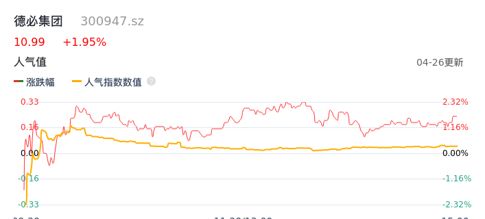 04月26日,德必集团收报10.99,股价涨幅1.95%,成交金额4405.69万元,换手率4.24%。