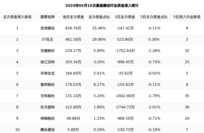 从主力资金流向来看,基础建设行业今日主力资金流入15.07亿元,在所有申万二级行业中排名:26/131。
