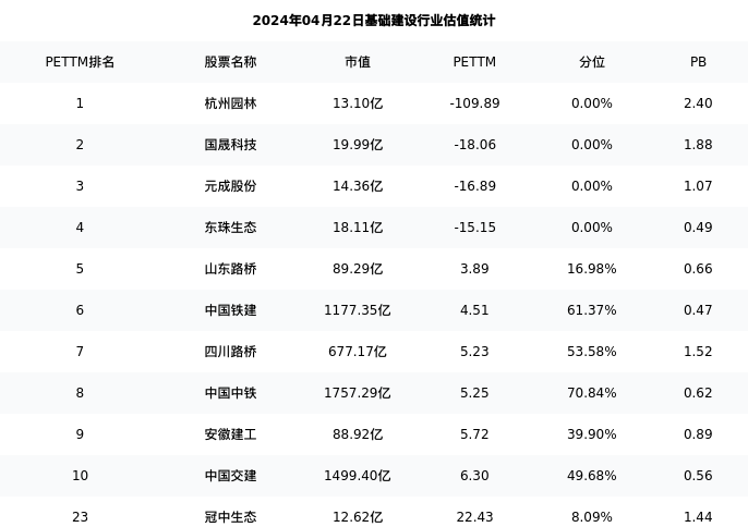 从估值角度看:冠中生态最新市盈率PETTM为22.43,在行业内排名19/48,处于8.09分位。
