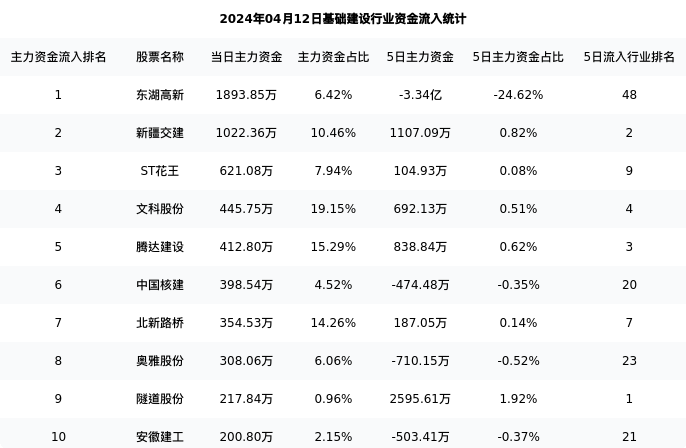 从主力资金流向来看,基础建设行业今日主力资金流入12.70亿元,在所有申万二级行业中排名:122/131。