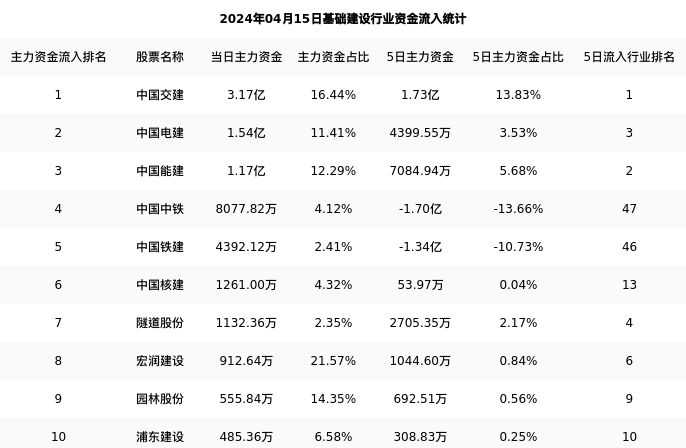 从主力资金流向来看,基础建设行业今日主力资金流入52.54亿元,在所有申万二级行业中排名:62/131。