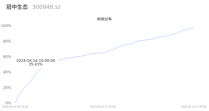 300948冠中生态2024年04月16日成交5.36万手,成交金额4673.15万元,相较昨日缩量4564手,换手率4.10%,成交清淡。