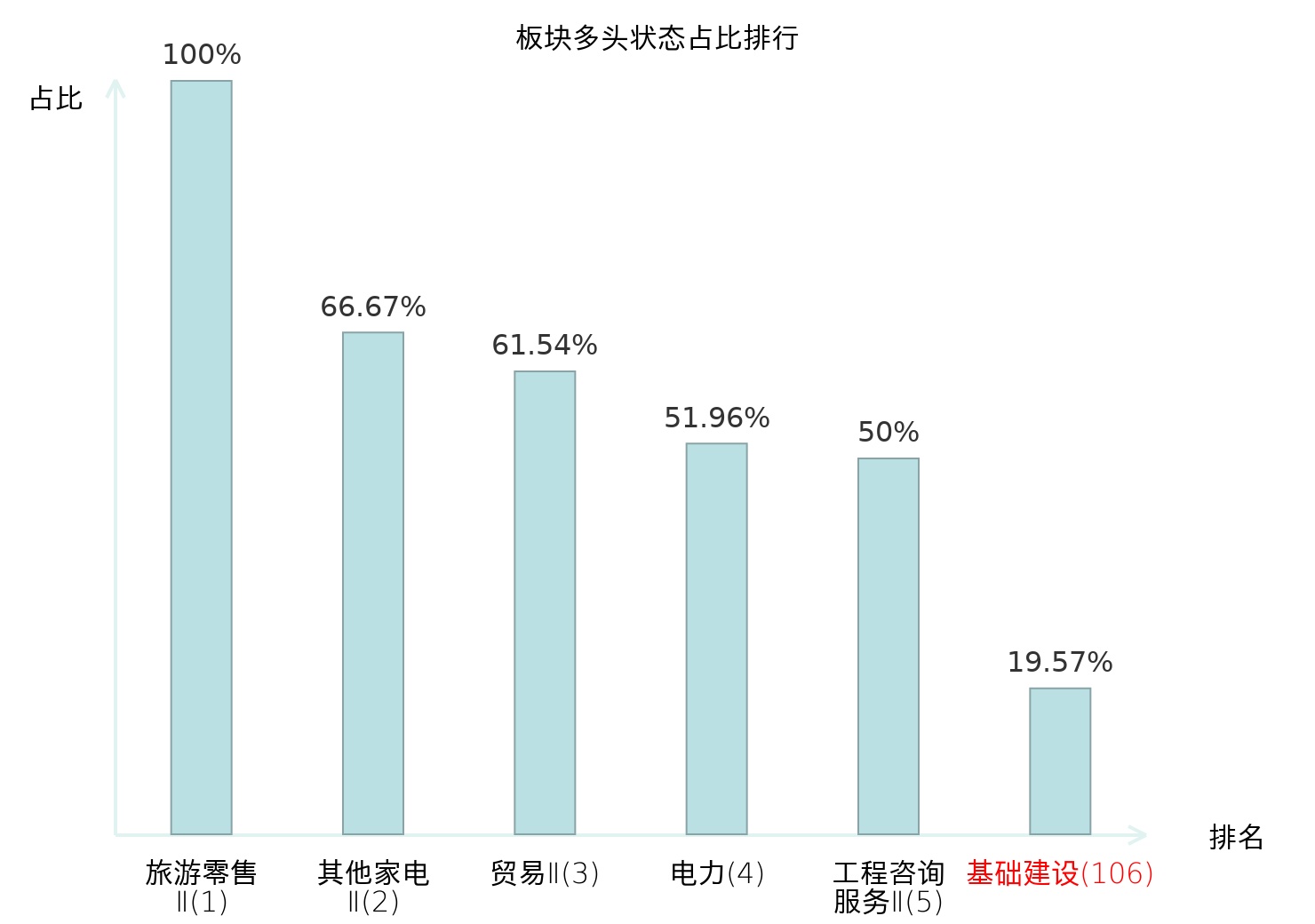 全市场所有行业板块中主力多头状态占比排名中,旅游零售Ⅱ板块位居第一。文娱用品板块名次提升最快,较昨日上升84位。