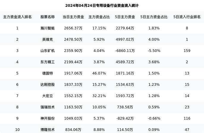 从主力资金流向来看,专用设备行业今日主力资金流入34.52亿元,在所有申万二级行业中排名:75/131。
