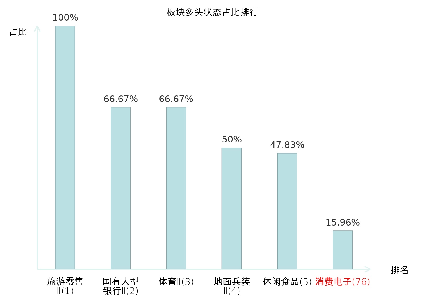 全市场所有行业板块中主力多头状态占比排名中,旅游零售Ⅱ板块位居第一。航空机场板块名次提升最快,较昨日上升80位。