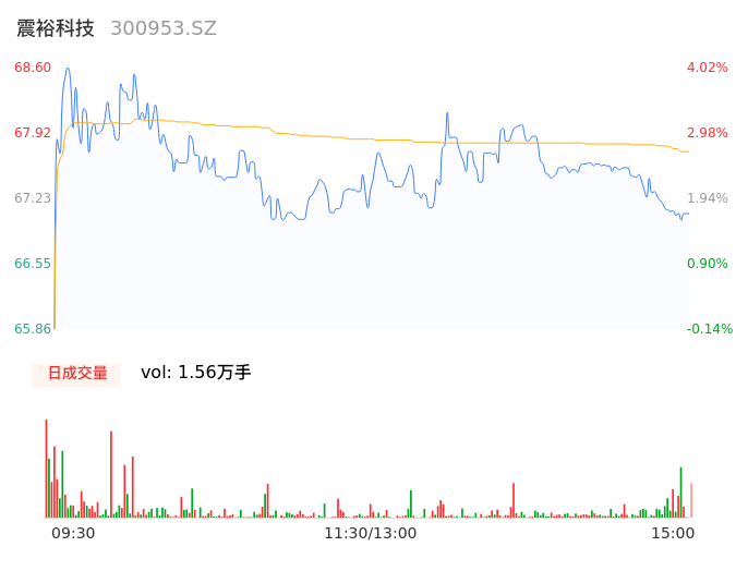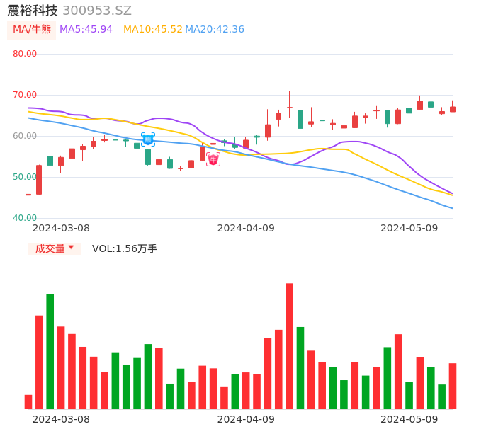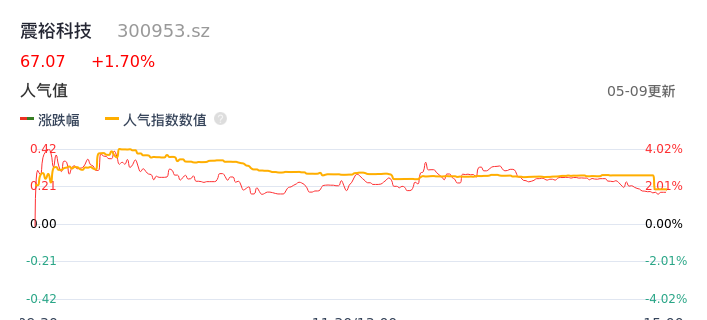 05月09日,震裕科技收报67.07,股价涨幅1.70%,成交金额1.06亿元,换手率2.51%。