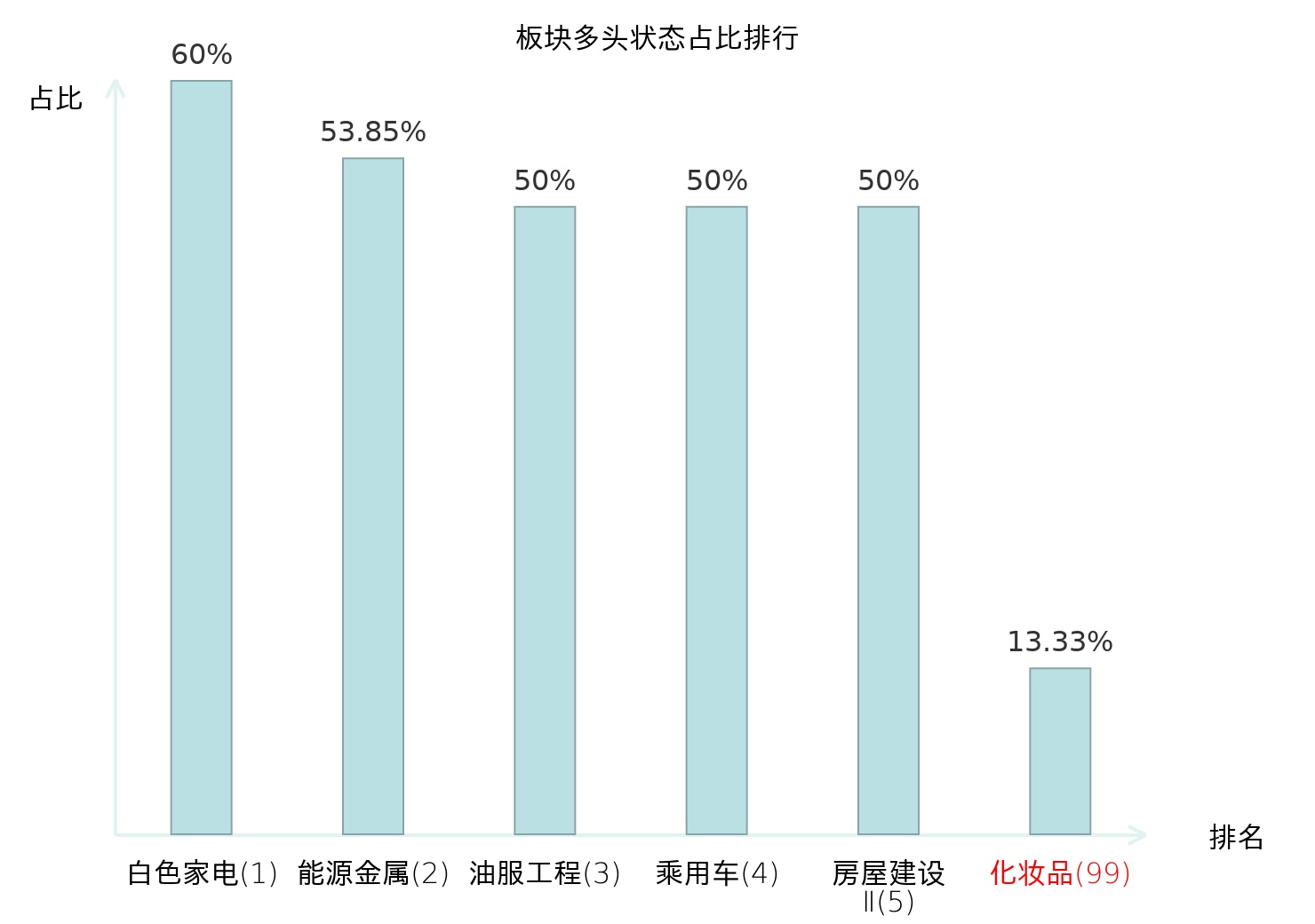 从主力宝信号数据分析,嘉亨家化所属的化妆品板块中共2只股票处于主力多头状态,主力多头状态占比在全行业中排名第99位,较昨日上升5位。较高的排名表明主力对于该板块整体看多意愿较强,此次排名上升可能反映了主力对该板块态度的积极调整。全市场所有行业板块中主力多头状态占比排名中,白色家电板块位居第一;油气开采Ⅱ板块名次提升最快,较昨日上升45位。这些变动揭示了不同行业间主力资金偏好的结构性变化,为投资者判断市场情绪分布与潜在关注方向提供了客观依据。