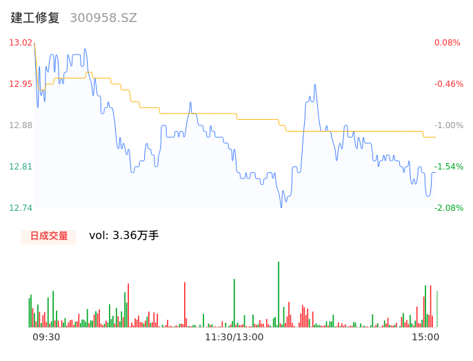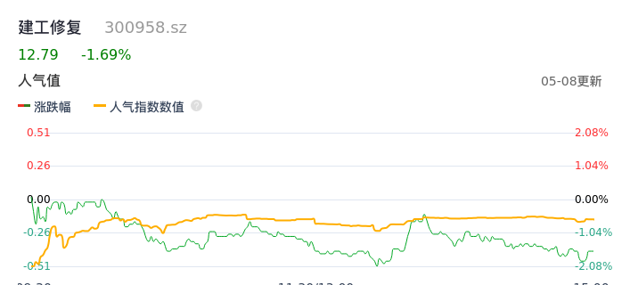 05月08日,建工修复收报12.79,股价涨幅-1.69%,成交金额4320.99万元,换手率3.69%。