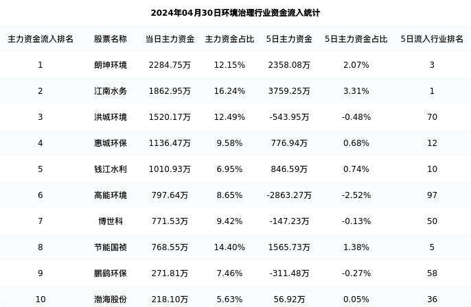 下表为今日行业内流入前10股票的信息
