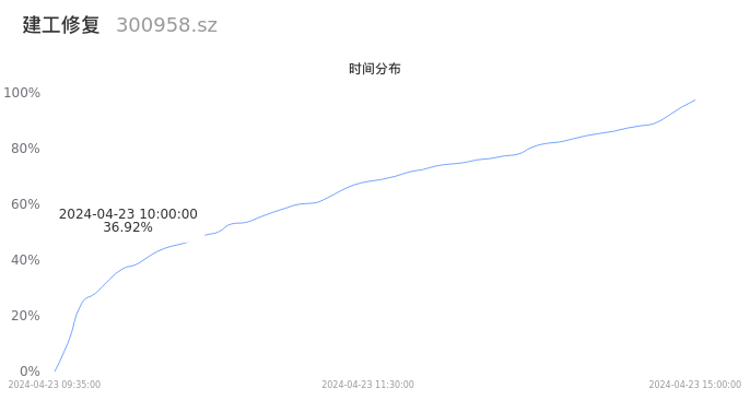 300958建工修复2024年04月23日成交4.59万手,成交金额5576.29万元,相较昨日缩量3.60万手,换手率5.04%,成交清淡。