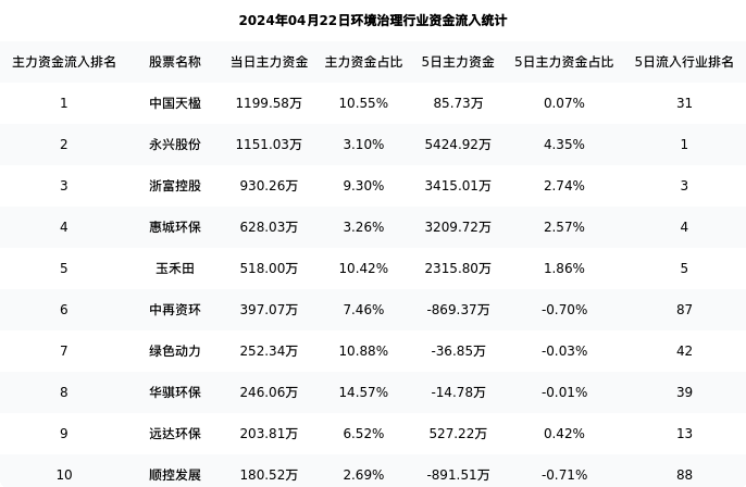 从主力资金流向来看,环境治理行业今日主力资金流入13.30亿元,在所有申万二级行业中排名:58/131。