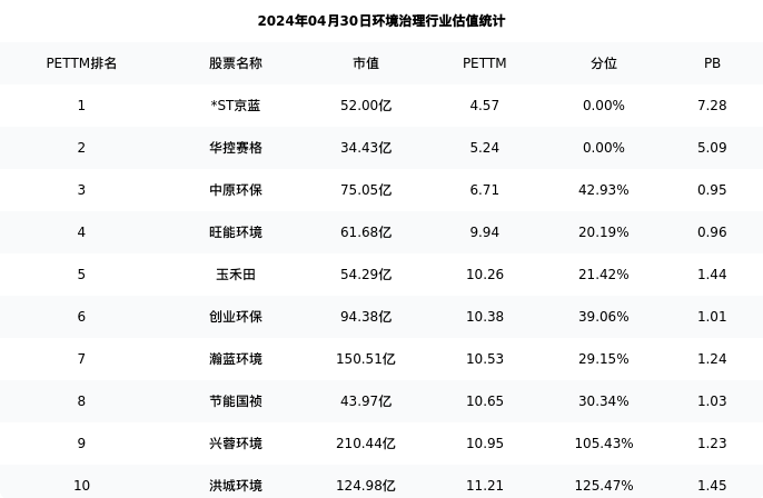 深水海纳最新报告期数据为一季度,下表汇总了环境治理行业内市值靠前的公司一季度主要经营数据
